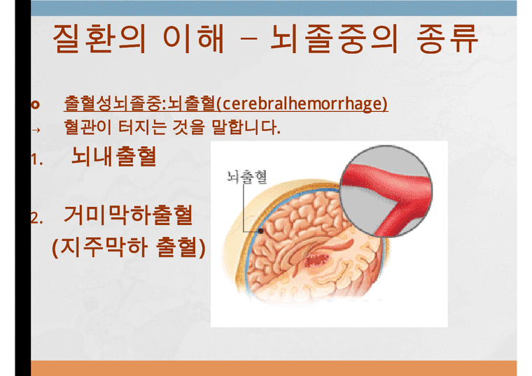 뇌졸중은 뇌출혈과 뇌경색으로 인해 발생할 수 있습니다. 뇌졸중을 앓았는데도 빨리 치료를 받지 않으면 평생 장애를 안고 살아갈 수도 있는 위험한 질병이다. 그럼 뇌졸중에 대해 알아보겠습니다.